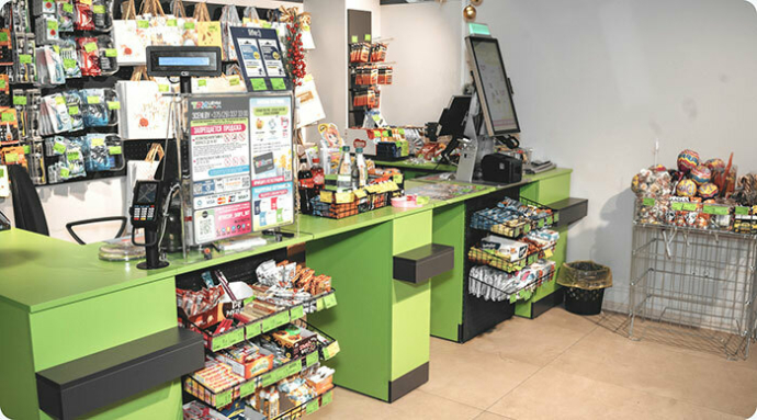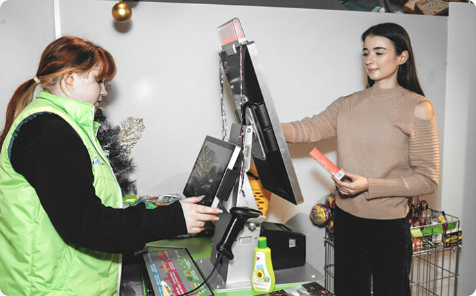 Когда гибрид показали команде «Три цены», они сразу поняли, что это удачное решение для их формата, и решили провести эксперимент в магазине. Первую гибридную кассу установили прямо на стойку кассира, вместо одной из двух классических касс и запустили в работу.