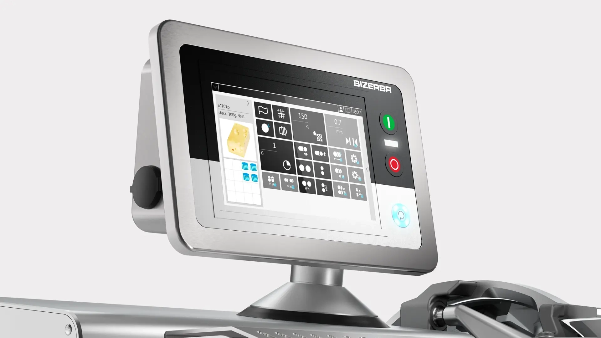 Уникальная эффективность нарезки обеспечивается благодаря персонализированным программам (PLU), которые можно настроить под конкретный продукт и тип укладки (например, стопка или веер), и сохранить в памяти.