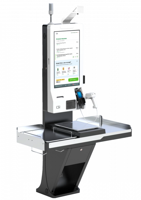 Автоматизированная система продаж поддерживает широкий спектр продукции, оперативно обрабатывает маркировку и отслеживает актуальность сроков реализации через специализированный программный компонент. Большой 27-дюймовый дисплей демонстрирует пользователю наименование, количество и стоимость позиции, предоставляя возможность скорректировать объем и включить дополнительную упаковку. Для добавления в чек крупногабаритных позиций предусмотрено использование ручного сканера.